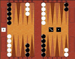 The roll of the dice indicates how many points, or pips, the player is to move his checkers. The checkers are always moved forward in the direction indicated in the diagram above.
